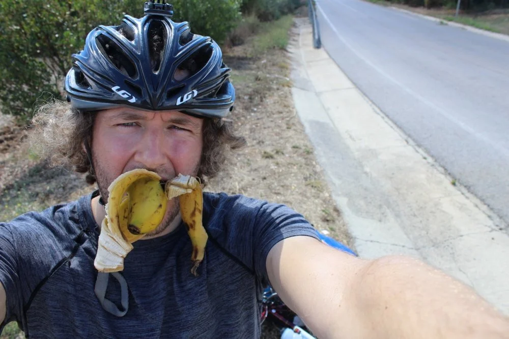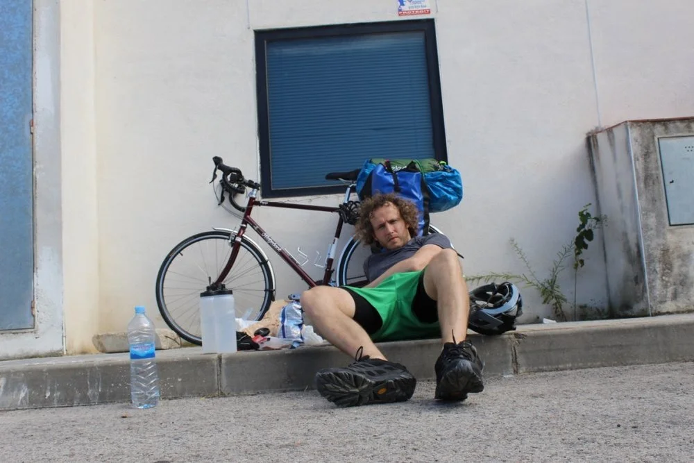 This was my first real day cycling. Unfortunately for me, I decided it would be a fantastic idea to begin it in the midday heat of Barcelona city centre. The heat choked my overworked lungs as I darted under bygone fiesta decorations and sun-bleached avenidas. Barcelona city transport department had decided the best way to implement traffic calming was to plonk a set of traffic lights every twenty-five metres. This meant I’d gradually work the crank to get my heavy cargo moving and build momentum then bring it to a juddering halt eight seconds later and start the whole process again. It was time to scruffily eat a banana near an ant’s nest and find the ocean.